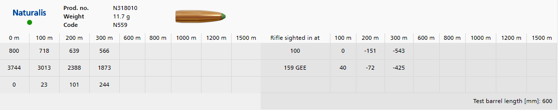 8x57 IRS Naturalis lövedékkel 180 gr / 11.7 g