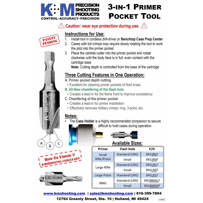 KM 3-in-1 PRIMER POCKET CORRECTION TOOL - SOLID CARBIDE